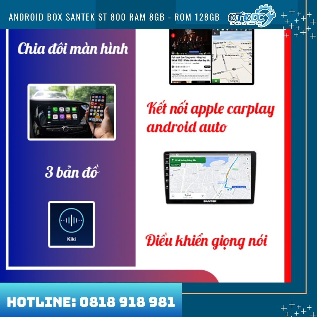 Bên cạnh đó, thiết bị còn hỗ trợ điều khiển bằng giọng nói, giúp thao tác nhanh chóng và an toàn hơn trong quá trình lái xe. Với những ưu điểm vượt trội về hiệu năng và tiện ích, Android Box Santek ST800 được xem là giải pháp nâng cấp công nghệ hiệu quả, mang lại trải nghiệm giải trí và hỗ trợ lái xe tiện lợi trên mọi hành trình.
