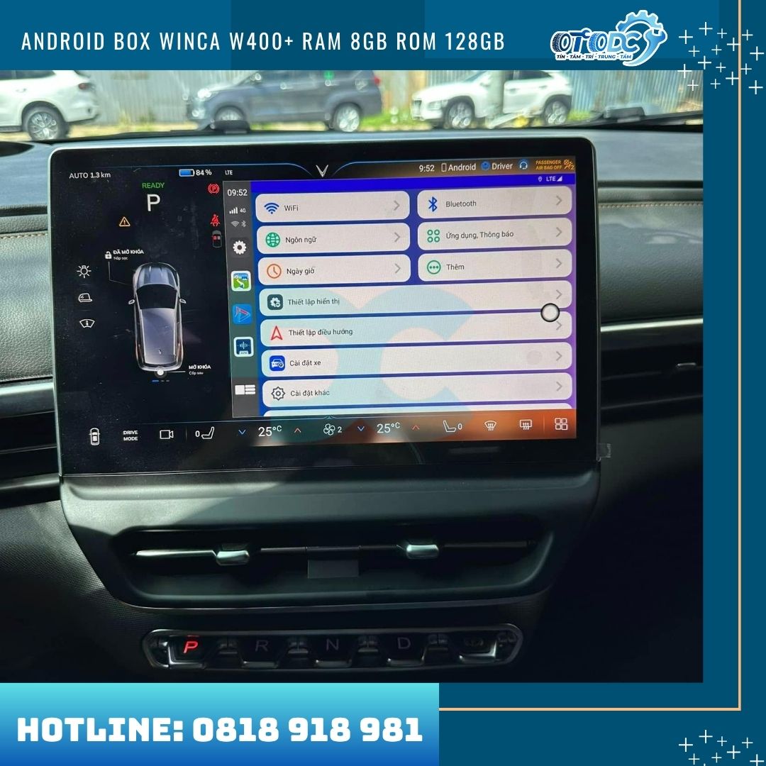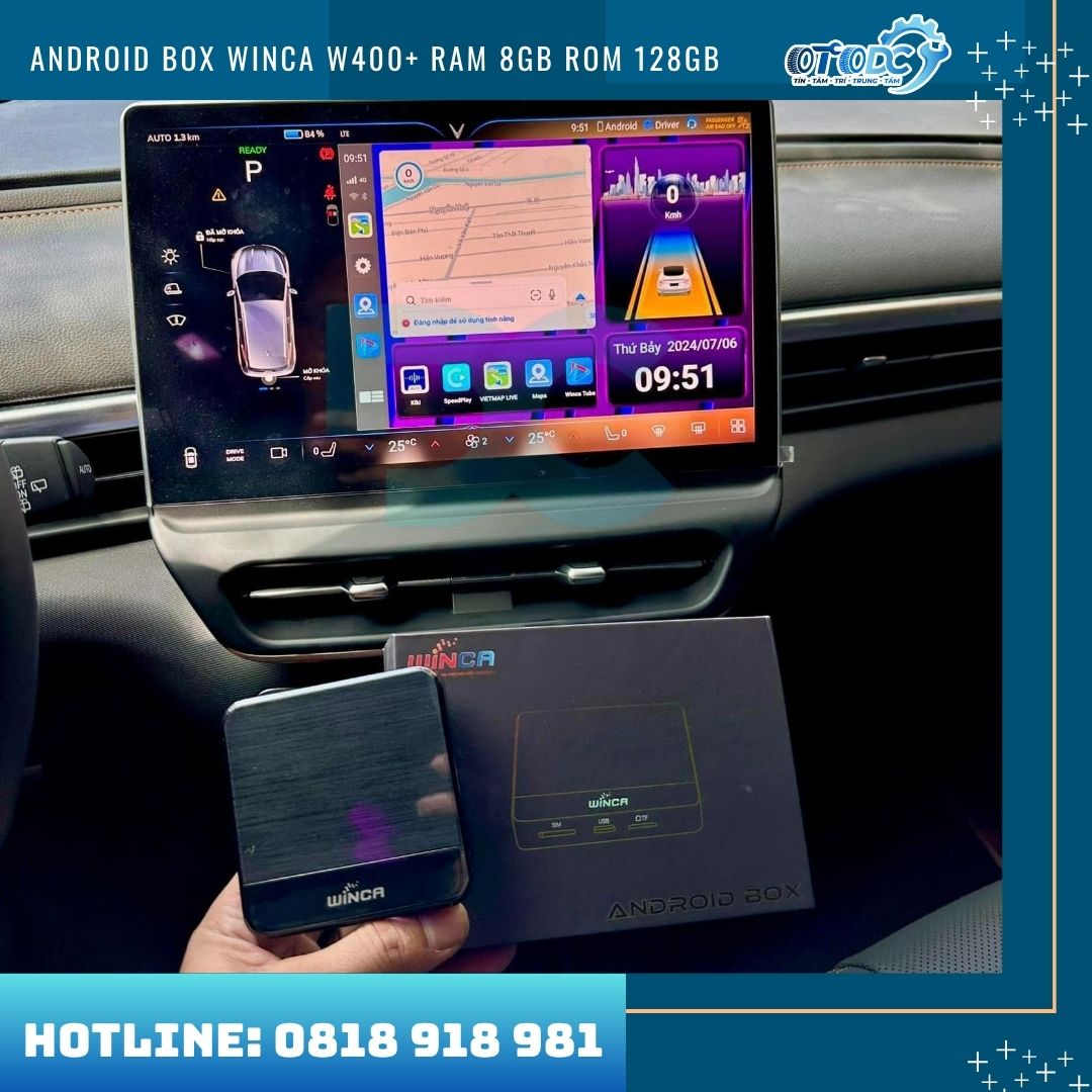 Việc lắp đặt Android Box Winca W400+ hoàn toàn an toàn và không làm ảnh hưởng đến hệ thống điện của xe. Thiết bị được thiết kế theo dạng Plug & Play (cắm là chạy) thông qua cổng USB hoặc Type-C có sẵn trên xe, không cần đấu nối dây điện, không can thiệp vào hệ thống điện nguyên bản. Nhờ đó, xe vẫn giữ nguyên cấu trúc zin của nhà sản xuất và đảm bảo an toàn tuyệt đối trong quá trình sử dụng.