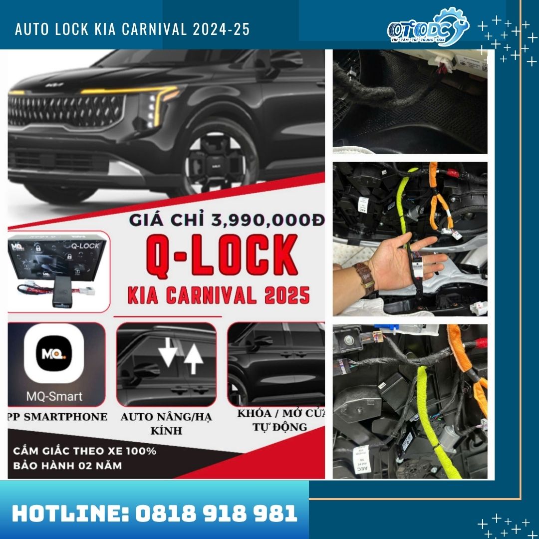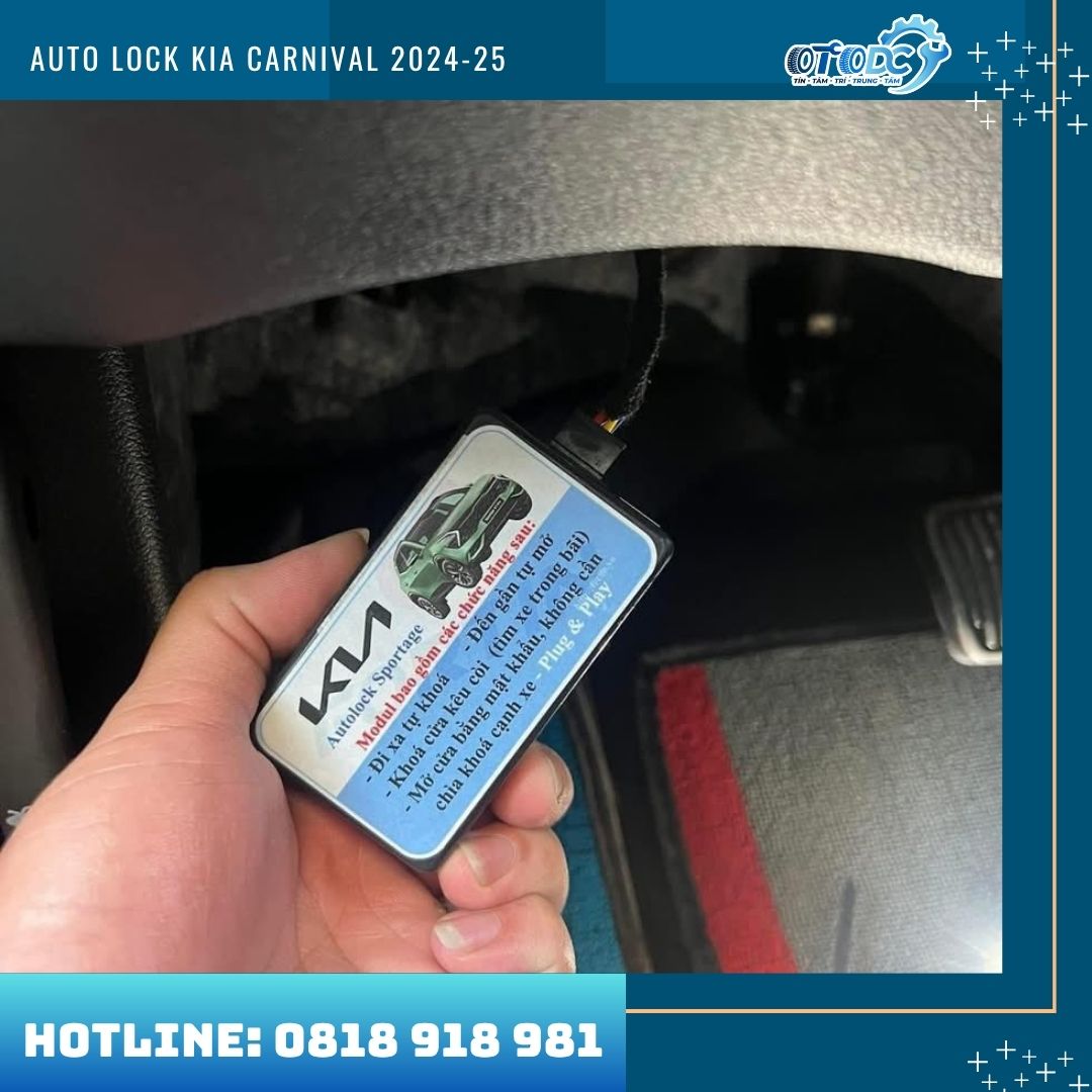 Chính vì lý do đó, hệ thống Auto Lock (khóa cửa tự động) đang trở thành phụ kiện được nhiều chủ xe Kia Carnival lựa chọn lắp đặt. Tính năng này giúp xe tự động khóa cửa khi bắt đầu di chuyển và mở khóa khi tắt máy, mang lại sự an toàn, tiện lợi và hiện đại hơn trong quá trình sử dụng xe.