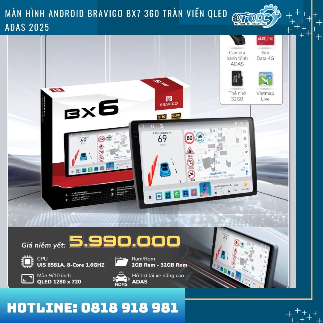 Màn hình android Bravigo BX7 360 Tràn viền QLED ADAS-BX6
