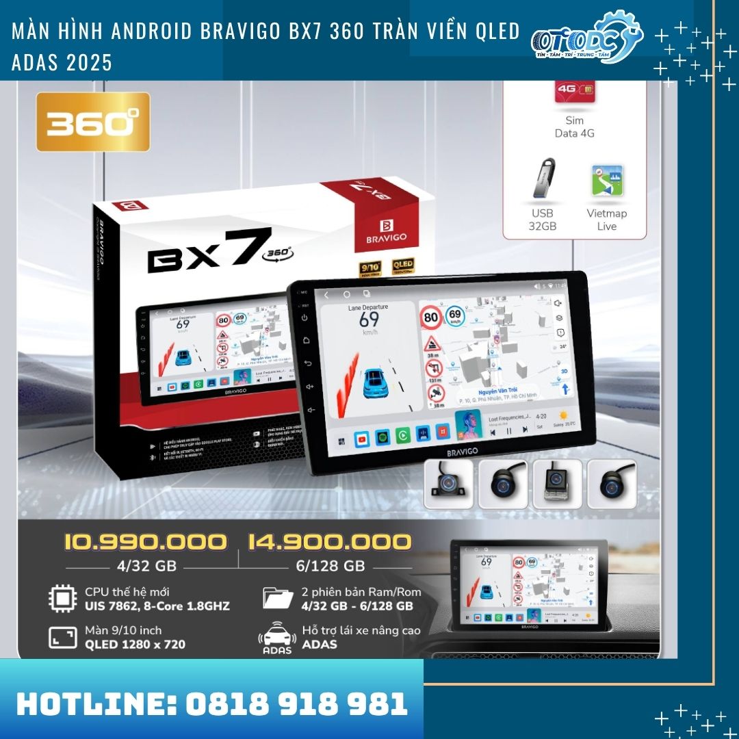 Màn hình android Bravigo BX7 360 Tràn viền QLED ADAS-BX7 4-32