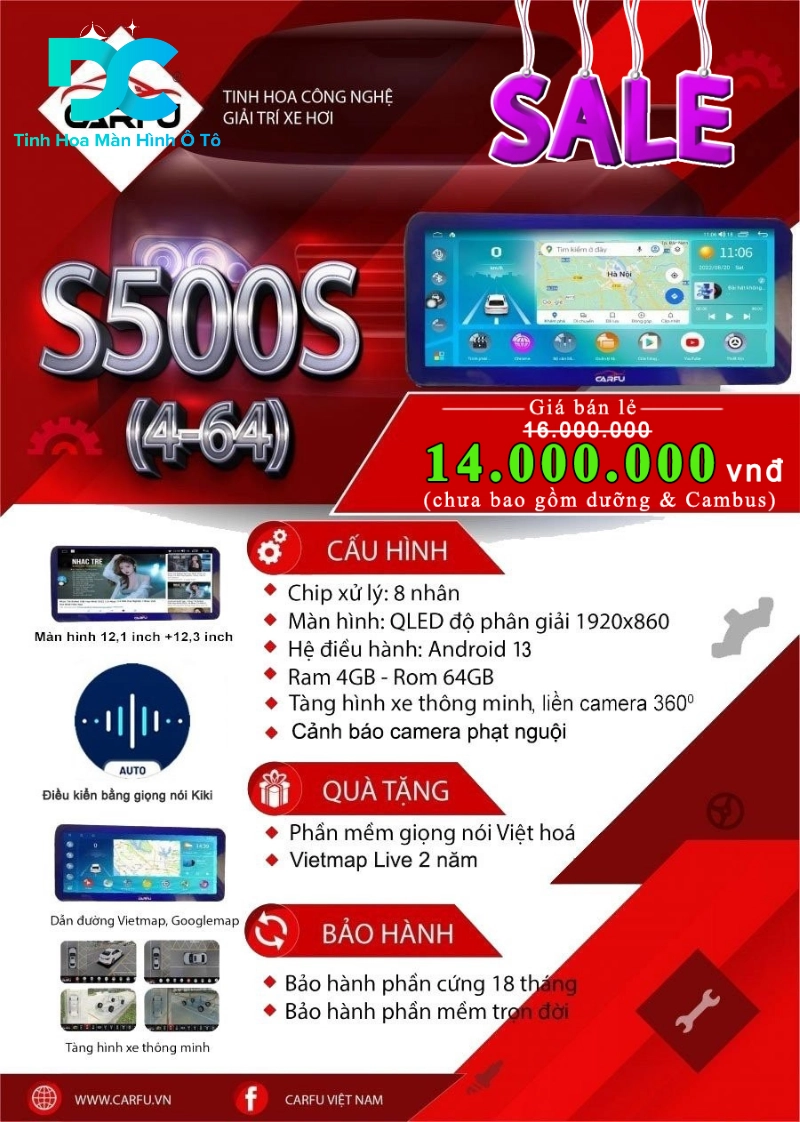Màn hình Android Carfu S550S 12.1 inch (RAM 4GB - ROM 64GB kèm Camera 360): 13.000.000 VNĐ